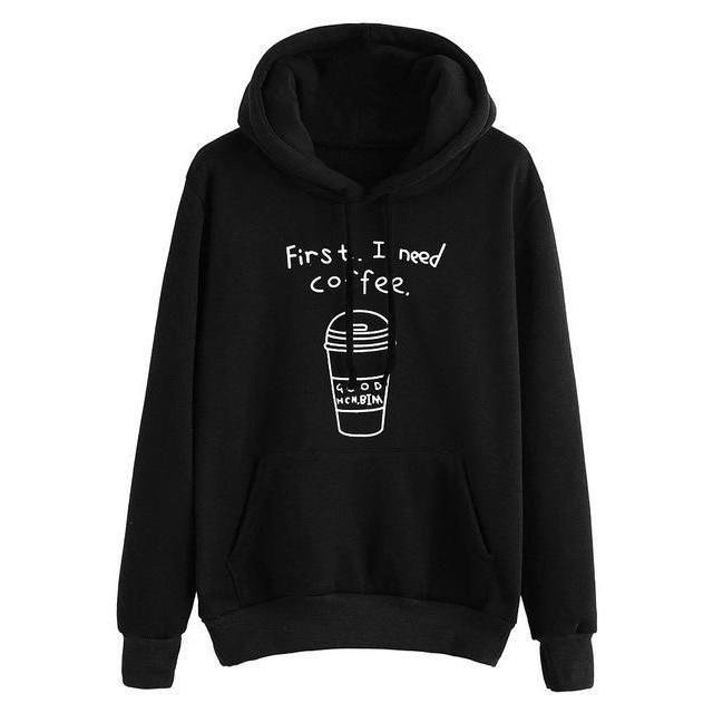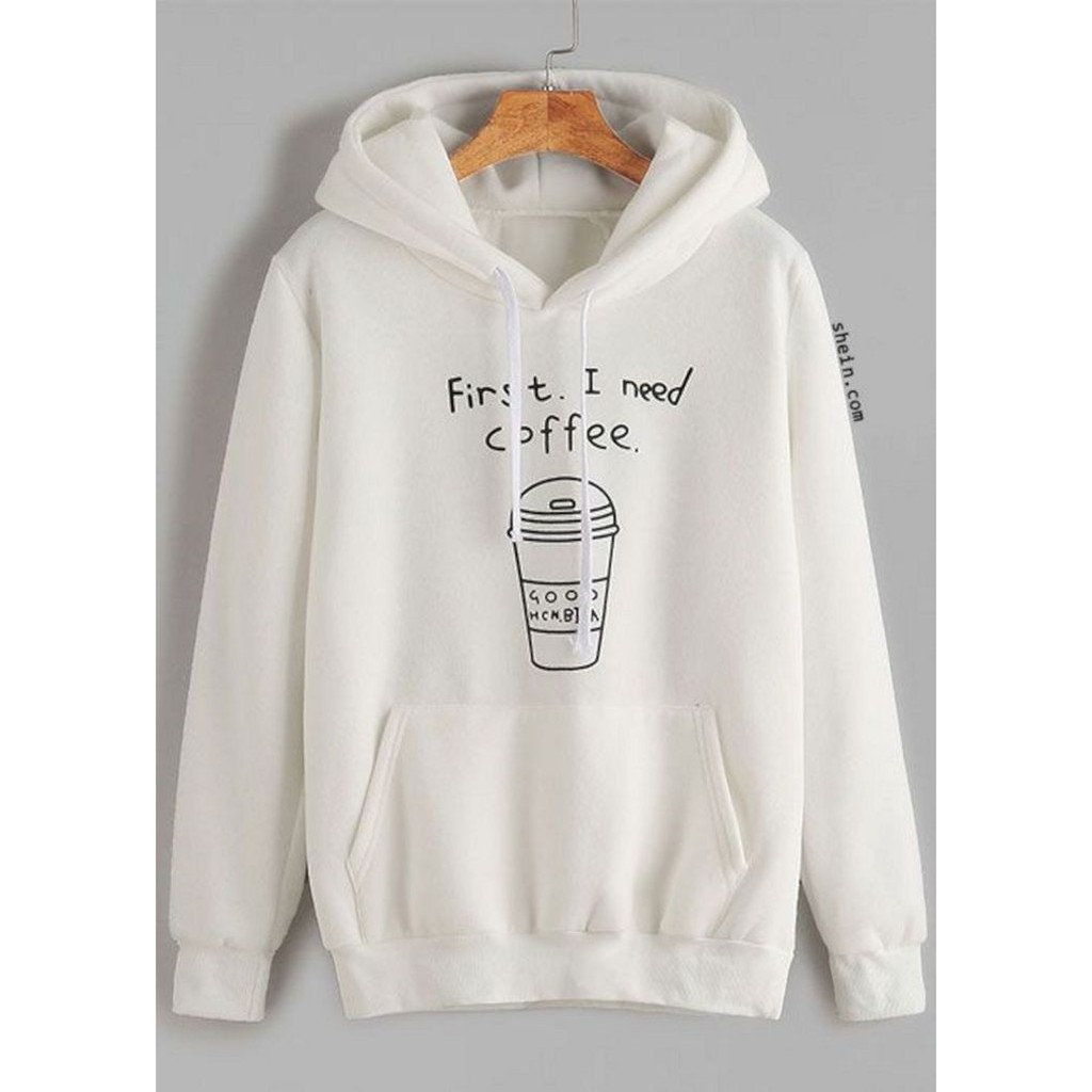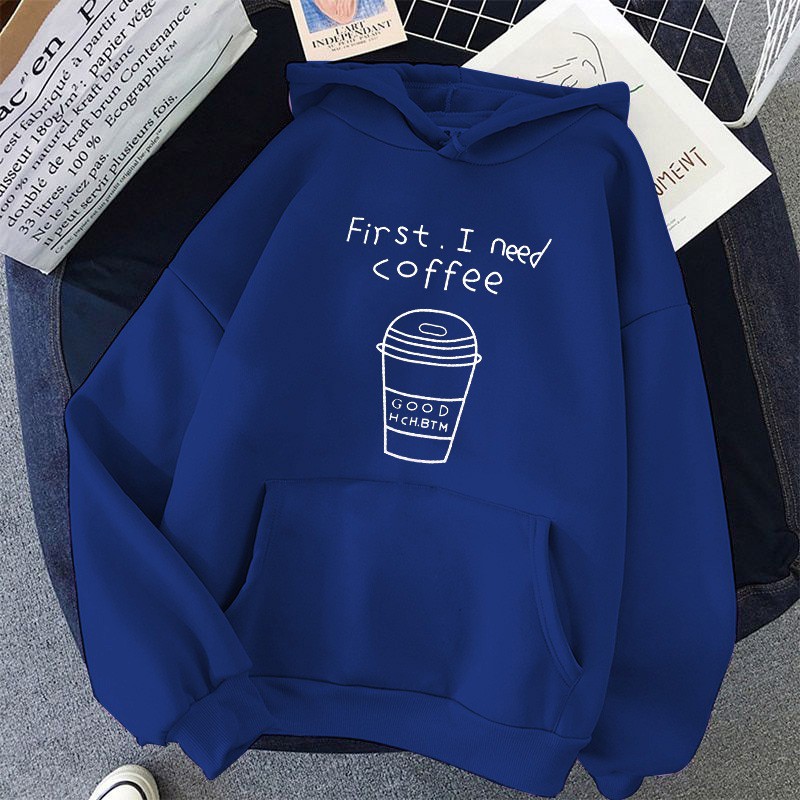 Kekurangan - Kekurangan membeli [FLEECE] Sweater Wanita / Pria Hoodie Oversize Lengan Panjang FIRST I NEED COFFEE di Toko ini