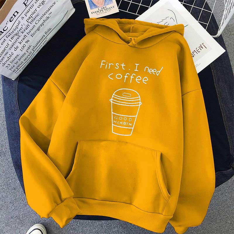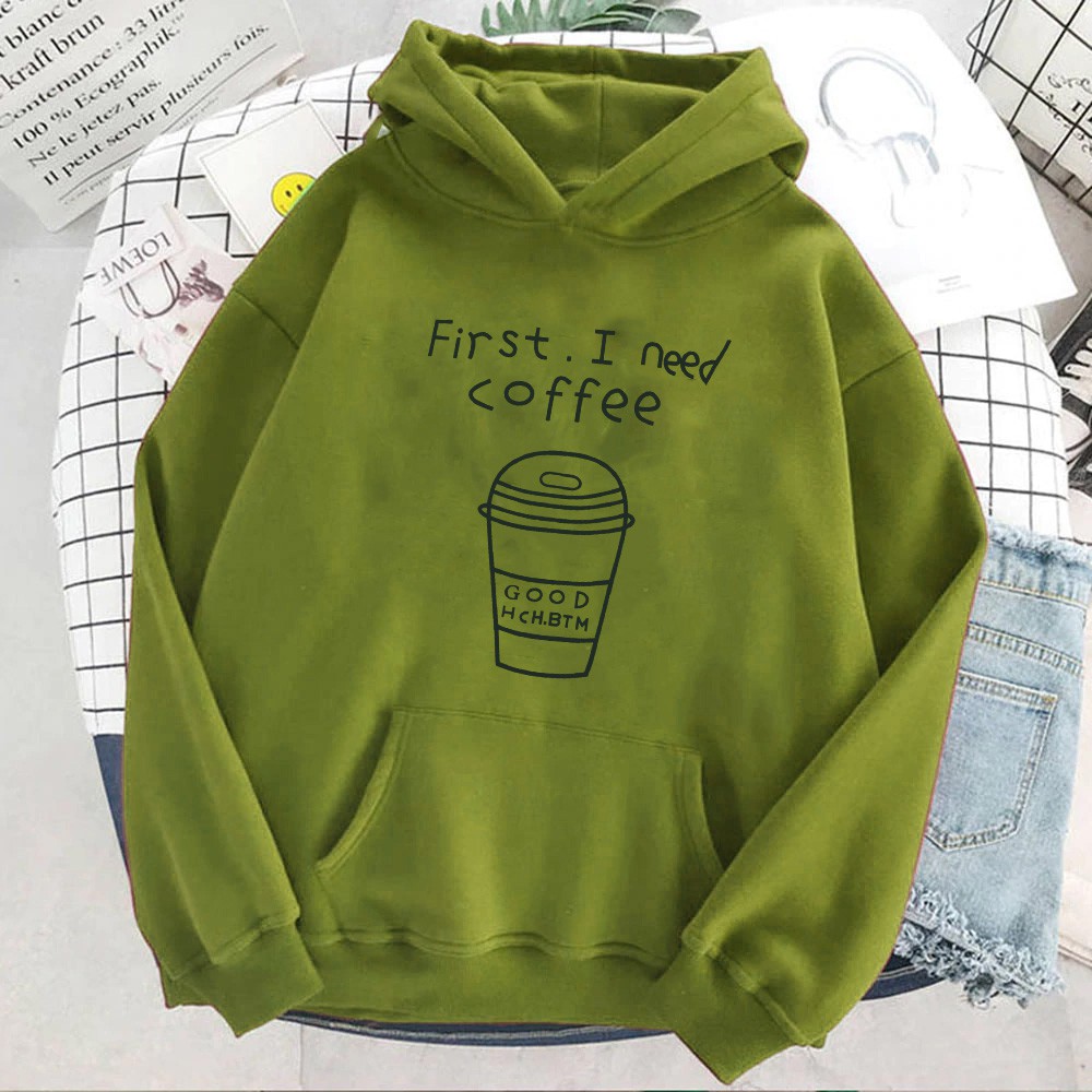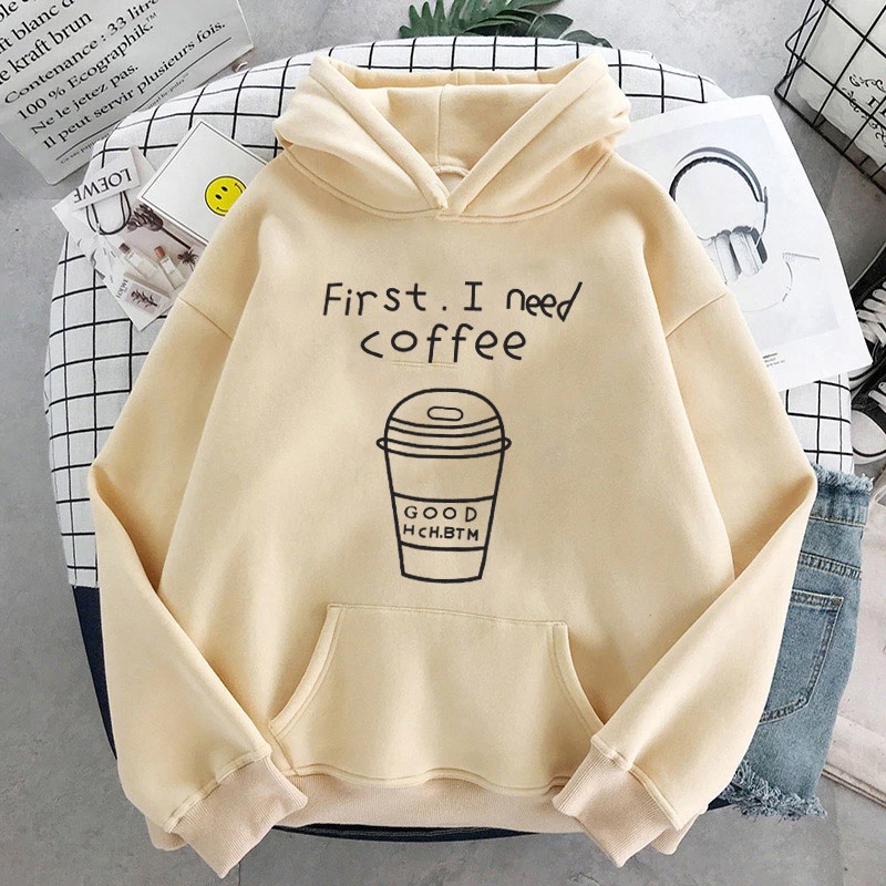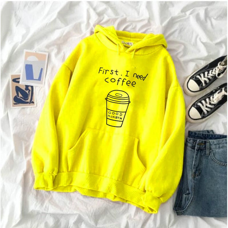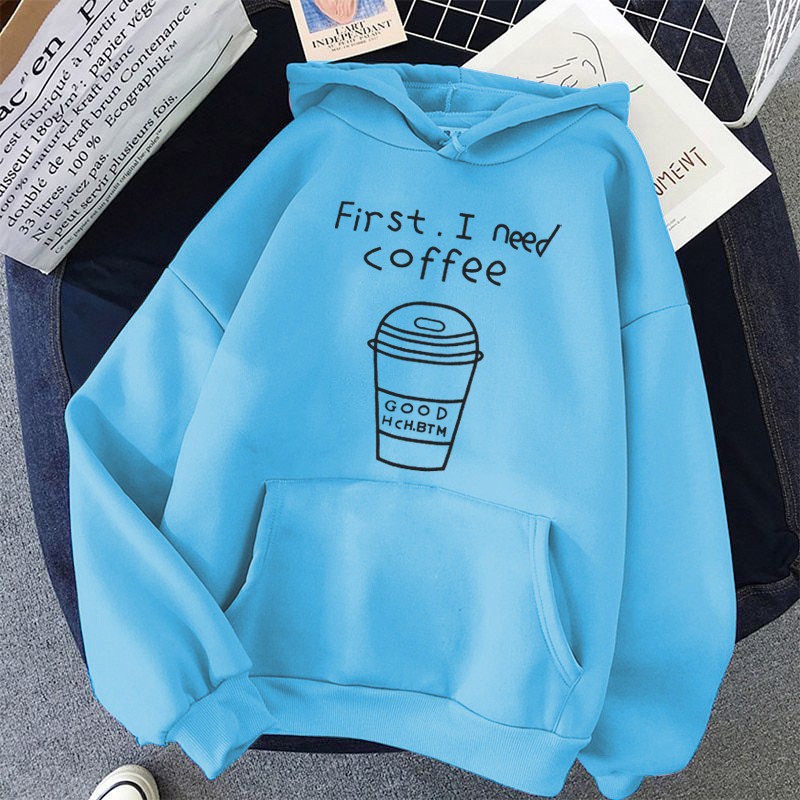 Alasan kenapa harus beli [FLEECE] Sweater Wanita / Pria Hoodie Oversize Lengan Panjang FIRST I NEED COFFEE sekarang