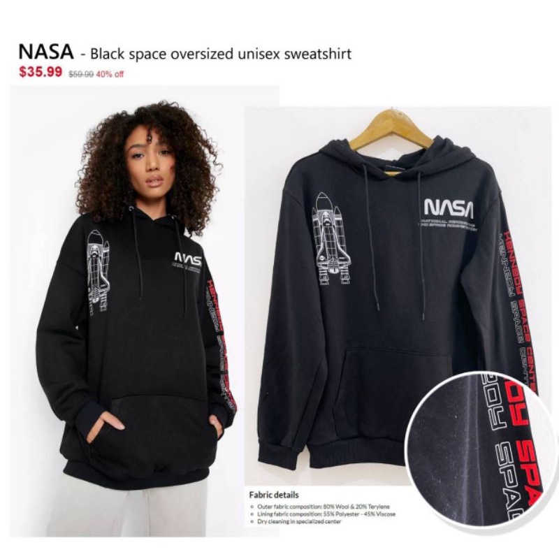 Kekurangan - Kekurangan membeli Nasa black space oversized unisex sweatshirt di Toko ini