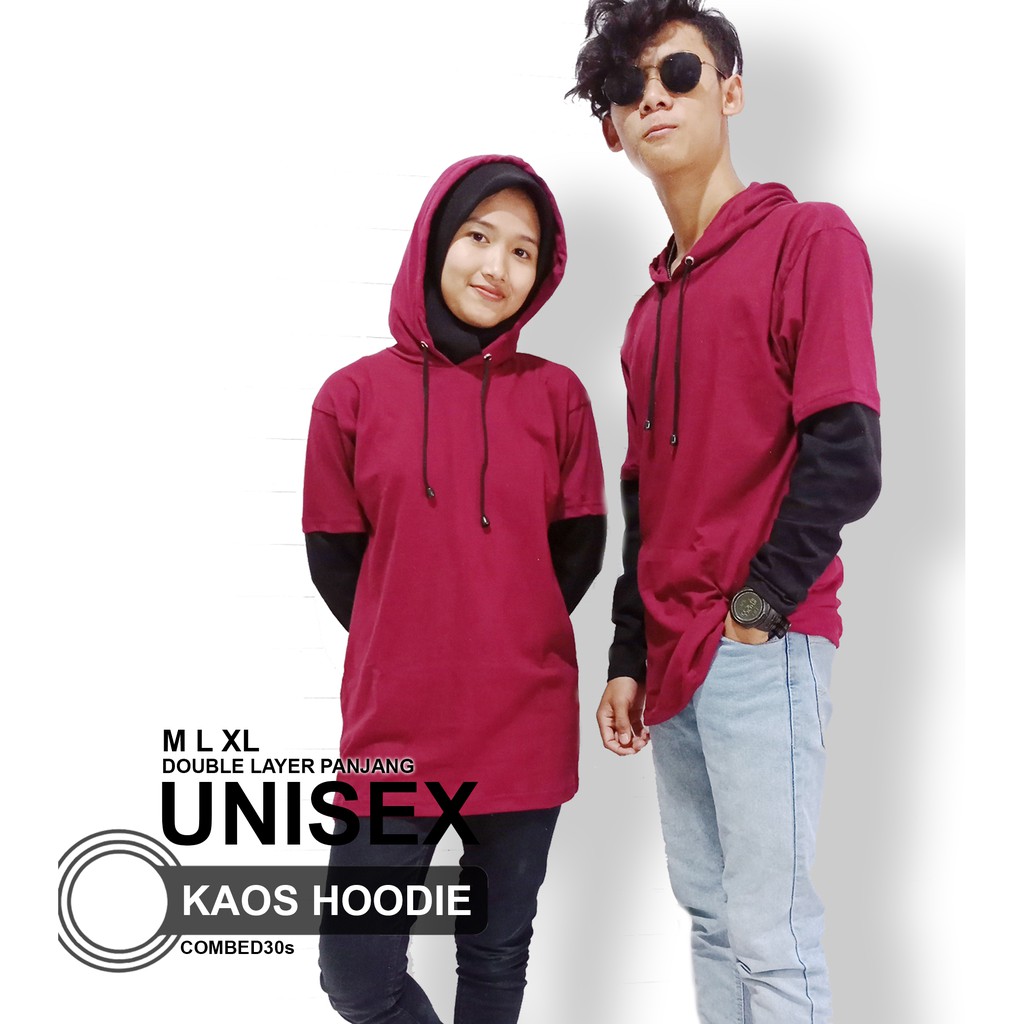 KAOS POLOS HOODIE DOUBLE LAYER LENGAN PANJANG/laki laki /perempuan/size m l xl/termurah /terlaris/bandung