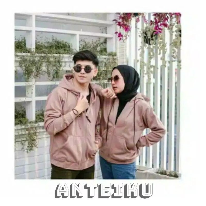 JAKET HOODIE ZIPPER COUPLE POLOS / SWEATER HOODIE COUPLE NATURAL /JAKET COUPLE PASANGAN