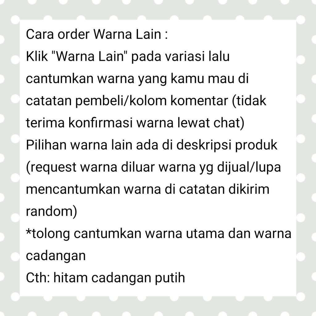 Produk ini memiliki 12 Variasi WARNA yaitu : KUNING,HITAM,PUTIH,MAROON,NAVY,BEIGE,ABU MUDA,LATTE,LILAC,COKLAT MOCCA,ARMY,WARNA LAIN DI NOTE,