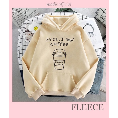 [FLEECE] Sweater Wanita / Pria Hoodie Oversize Lengan Panjang FIRST I NEED COFFEE