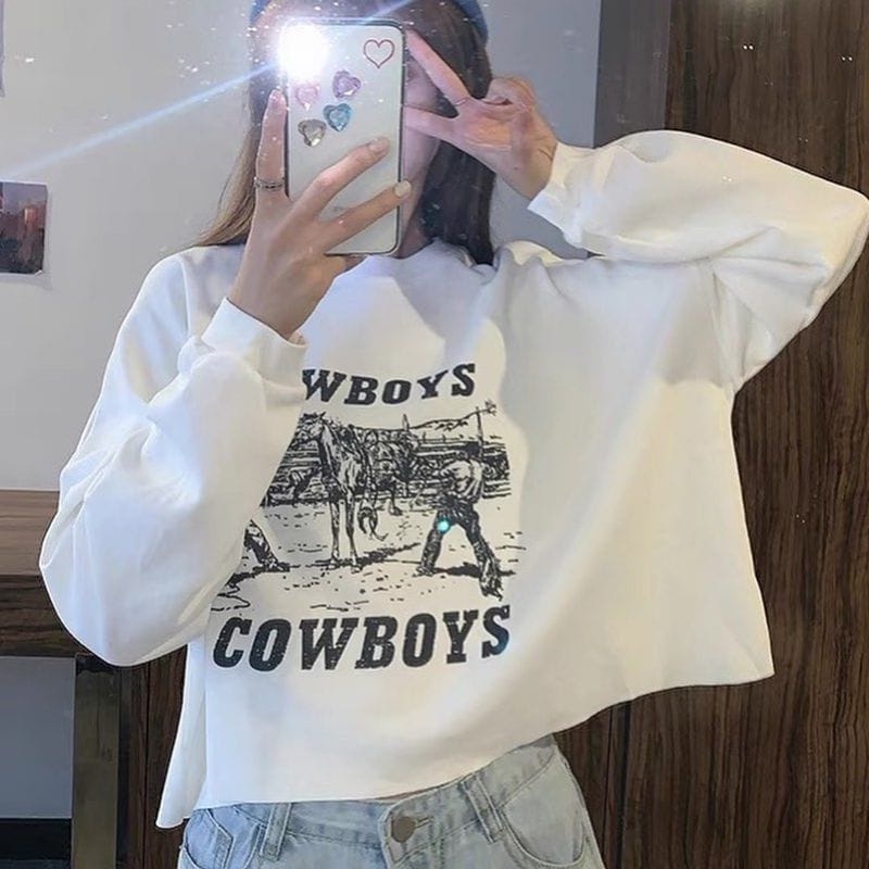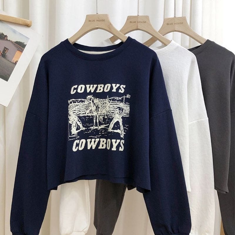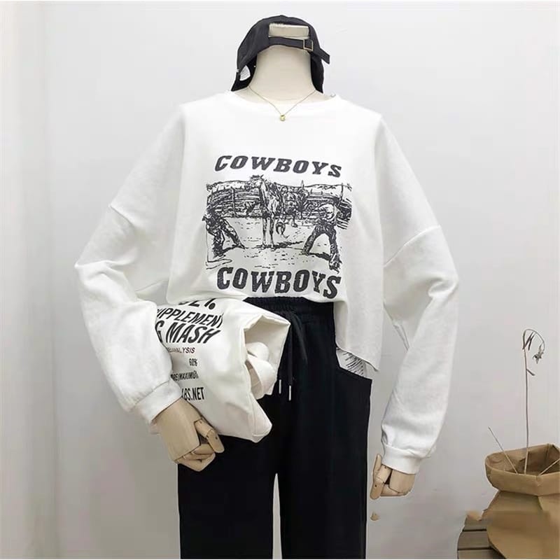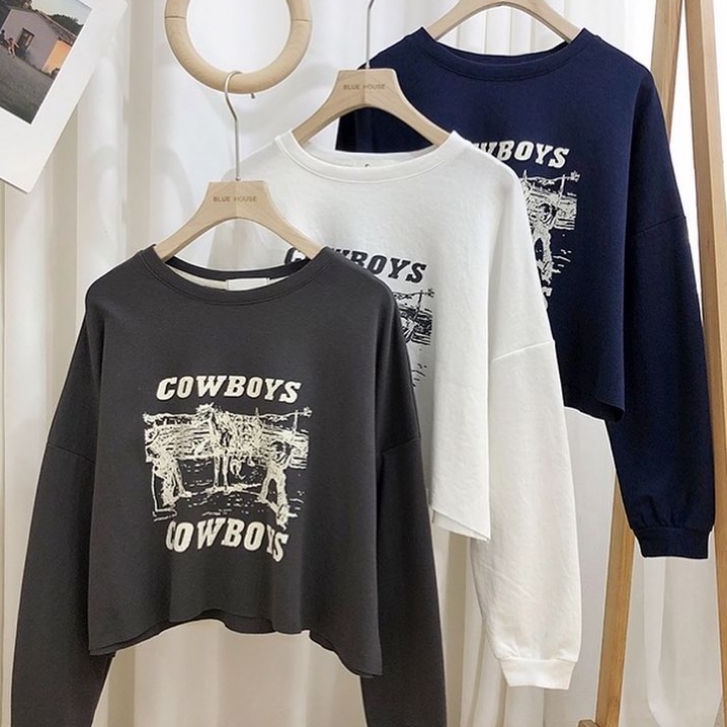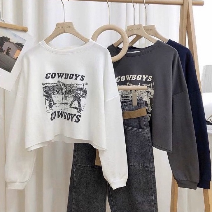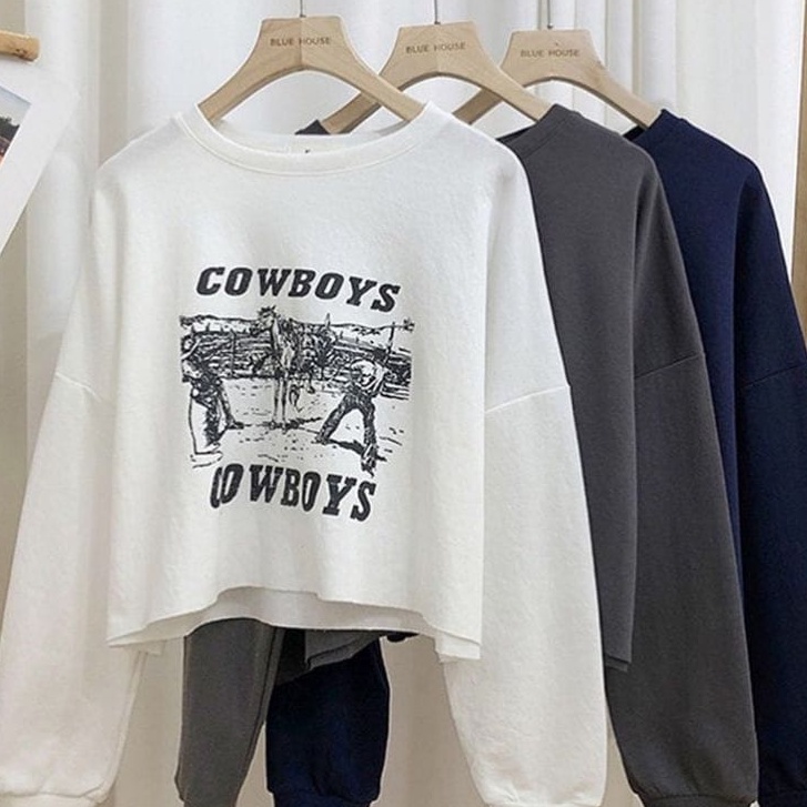 Harga COD - Cowboys Crop Sweater Korean Style Premium Outerwear Remaja Wanita Matt Fleece Tebal