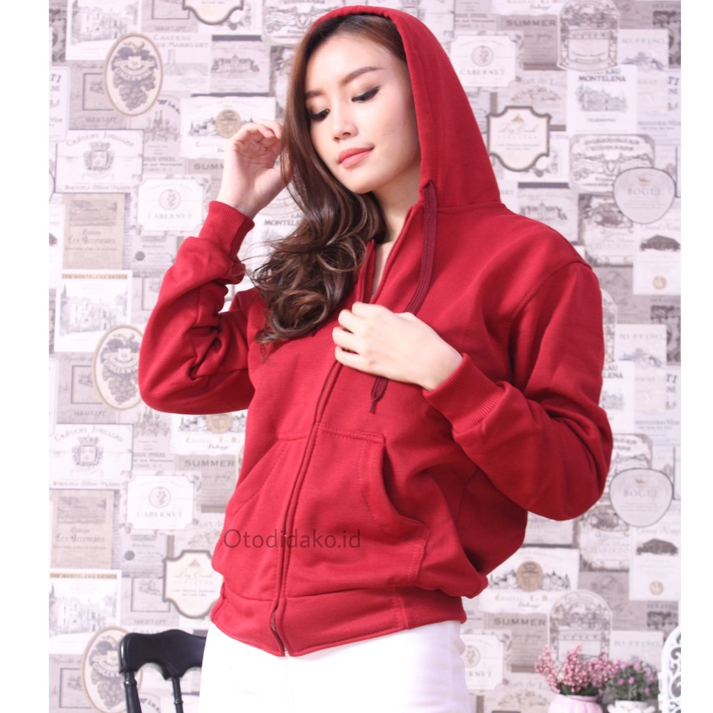 SWEATERHOODIE JAKET HOODIE ZIPPER/SLETTING MAROON POLOS SIZE M-XXL (PRIA & WANITA)