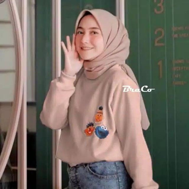 ELMO 3 FACE SWEATER WANITA - SWEATER OVERSIZE BORDIR ELMO
