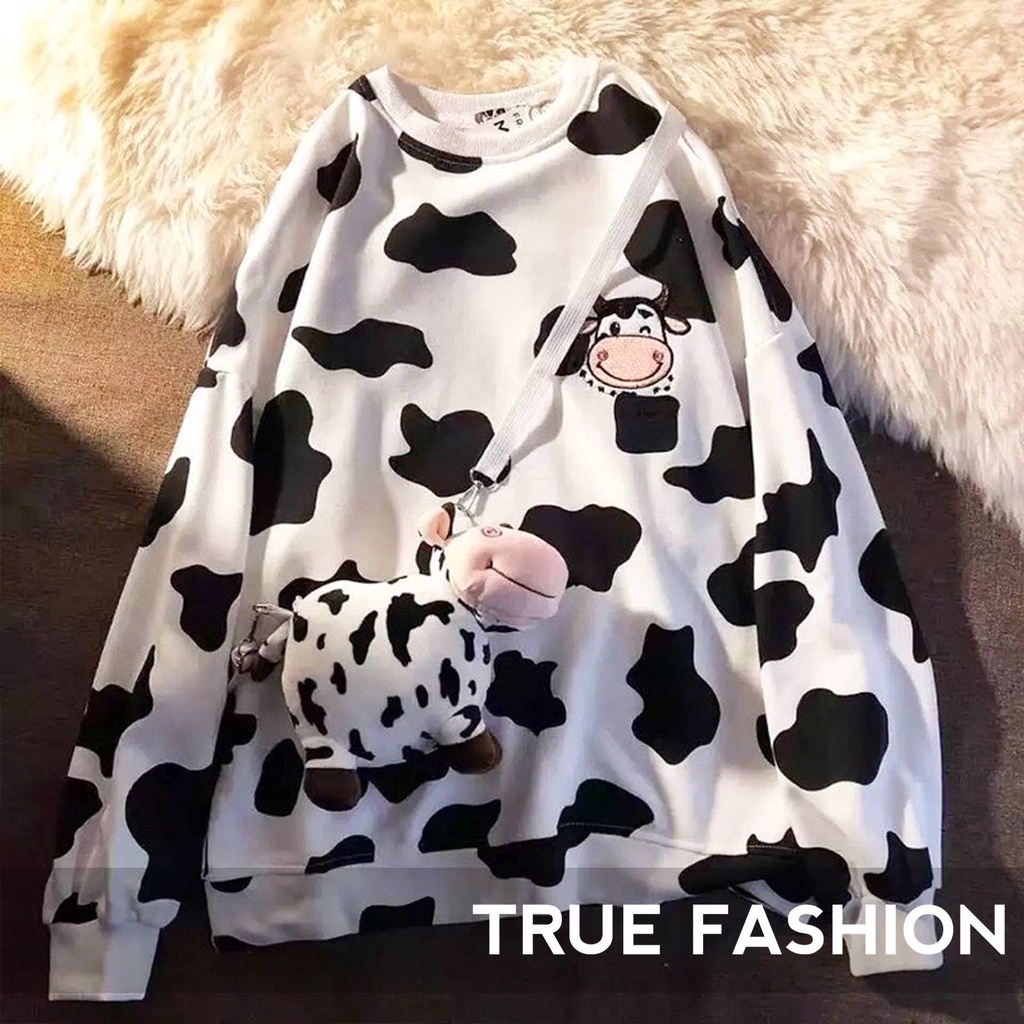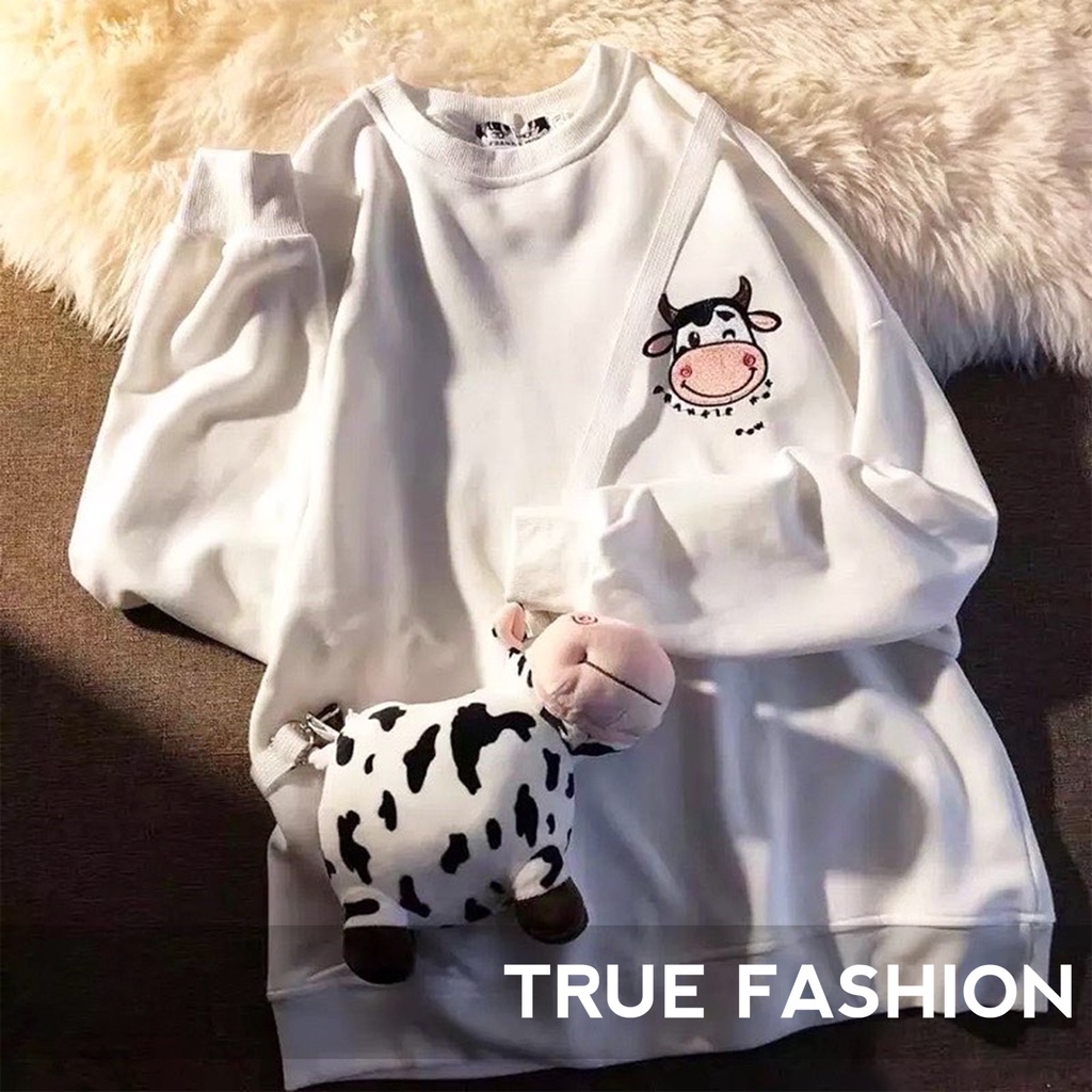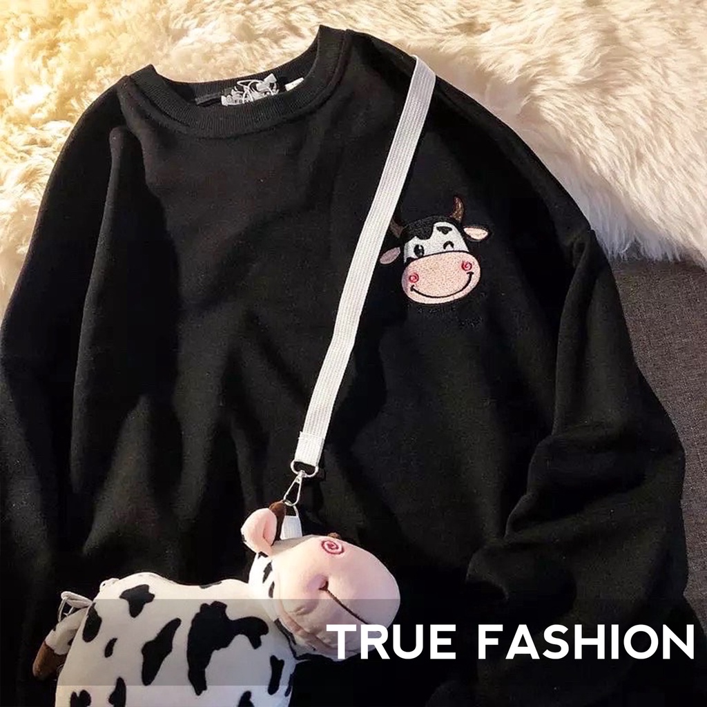 Kelebihan - Kelebihan membeli Sweater Bordir Sapi Lucu - Sweatshirt Cow Oblong Terbaru - Bahan Fleece | Allsize di Toko ini