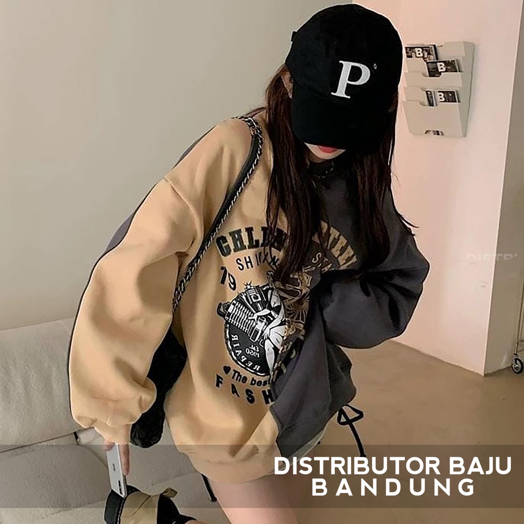 Harga Sweater Crewneck Clein Rteel Combination Color | Teen Shining Korean Style Sweatshirt Oblong Terbaru | Bahan Fleece Tebal Dan Lembut | Allsize