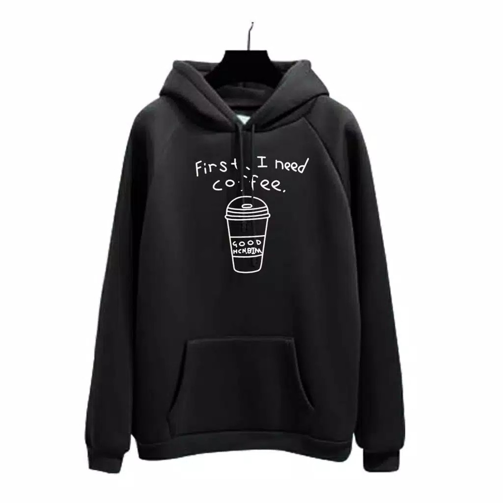 SWEATER POLOS HOODIE JUMPER FRIST I NEED COFFEE SIZE M-XXL (PRIA & WANITA)