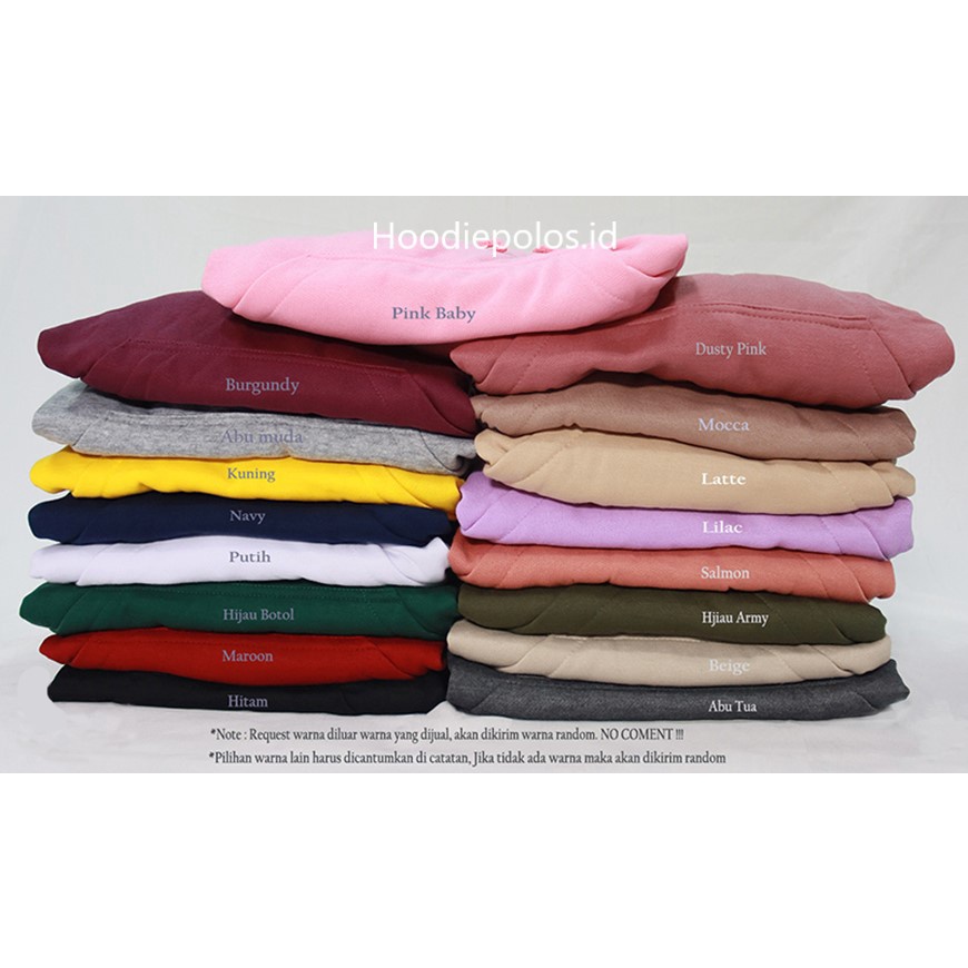 Produk ini memiliki 12 Variasi WARNA yaitu : KUNING,HITAM,PUTIH,ABU MUDA,COKLAT MOCCA,MAROON,NAVY,BEIGE,LATTE,LILAC,HIJAU ARMY,WARNA LAIN DI NOTE,