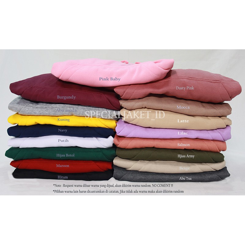 Produk ini memiliki 12 Variasi WARNA yaitu : KUNING,HITAM,PUTIH,MAROON,NAVY,BEIGE,LATTE,ABU MUDA,COKLAT MOCCA,ARMY,LILAC,WARNA LAIN DI NOTE,